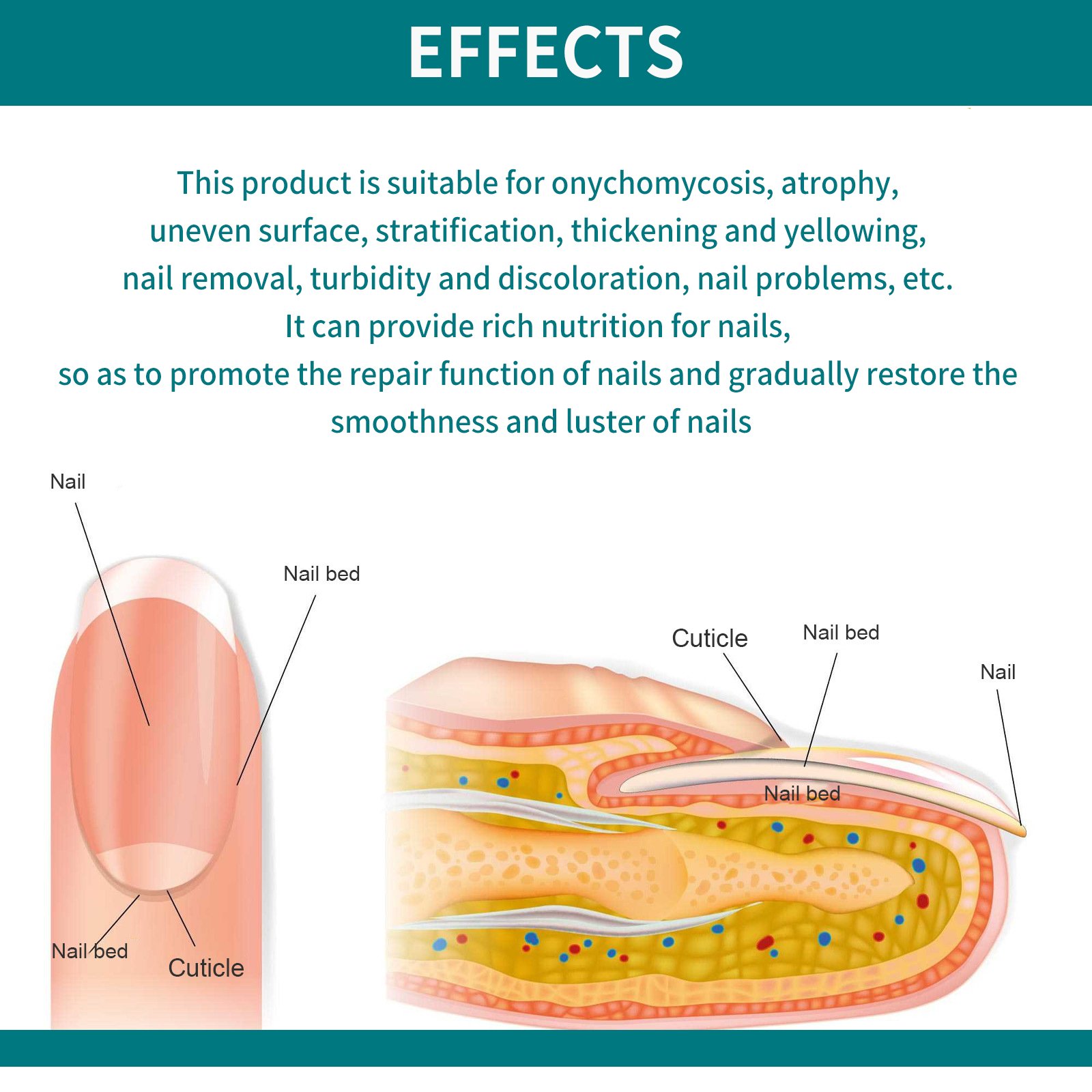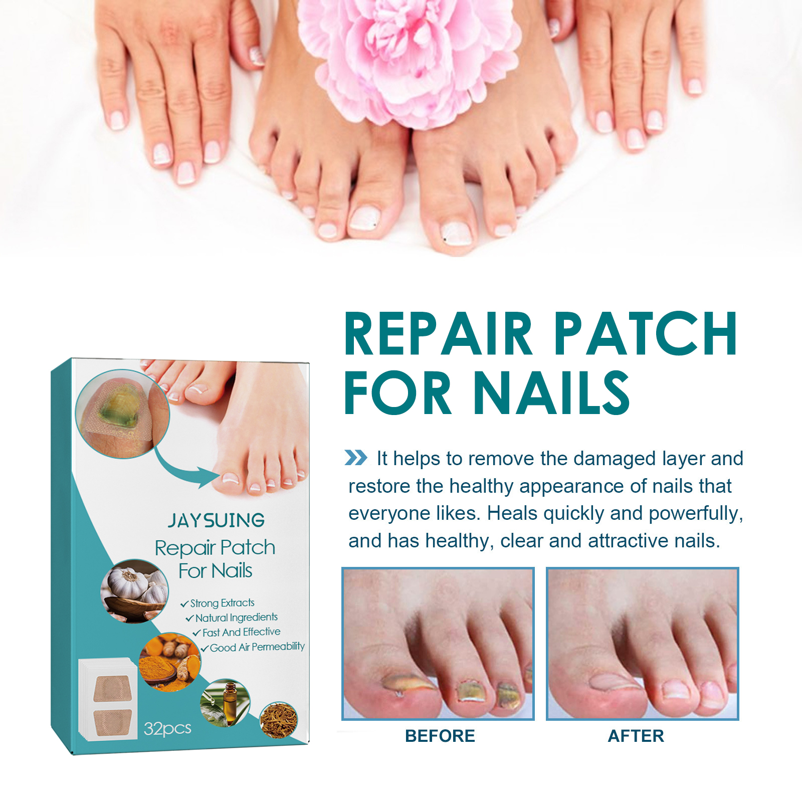 Our nail repair patches contain garlic extract, turmeric extract, tea tree oil. It can be applied to onychomycosis, atrophy, uneven surface, delamination, thickening and yellowing, nail removal, turbidity and discoloration, nail problems, etc. Remove the damaged layer and restore the healthy appearance of nails that everyone loves. Remove fungus, avoid secondary infections, heal quickly and strongly, and have healthy, clear and attractive nails. The way to use it is simple: remove nail polish before using. Wash nails and thoroughly dry the skin around them, as oils and moisture reduce adhesion; Remove the protective paper from the patch, then apply the patch to the site of nail fungus infection; Firmly cover the side patch of the toe or finger, then fold the remaining adhesive part completely over the toe/fingertip; Use time is 6-8 hours. (Recommended use before going to bed, continuous use for 3-6 months to achieve the desired effect). It can provide rich nutrients for the nails, thus promoting the repair function of the nails, and gradually restoring the smooth and luster of the nails.